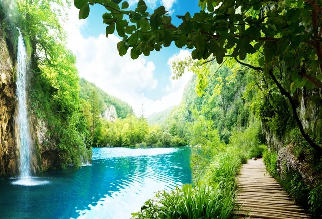 Laeacco Spring Mountain Waterfall River Pathway ...